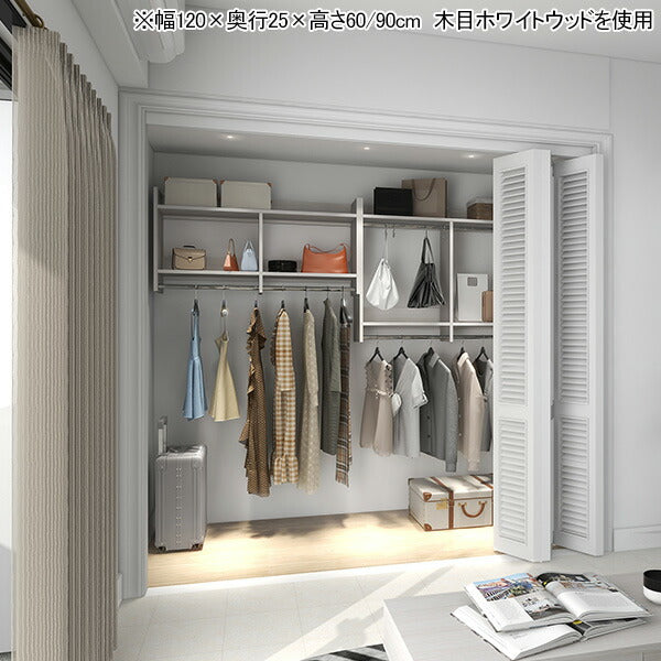 使用商品 上:幅60×奥行25×高さ90cm 木目ブラウン×オーク、下:幅60×奥行25×高さ60cm WhiteWood