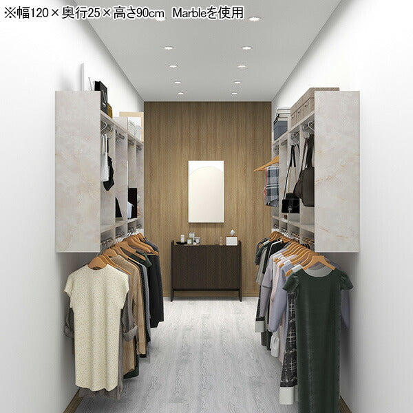 使用商品 上:幅100×奥行20×高さ38cm Marble、左下:幅120×奥行25×高さ70cm 木目オーク、