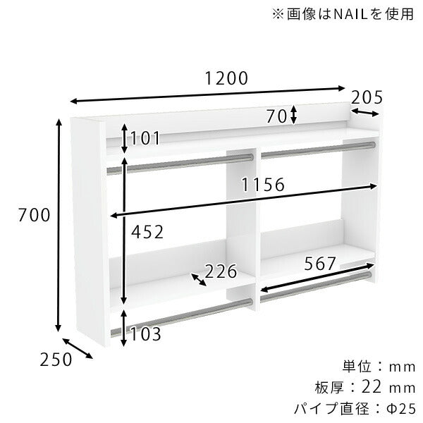 使用商品 上:幅100×奥行25×高さ90cm 突板タモ、下:幅120×奥行25×高さ38cm Nail