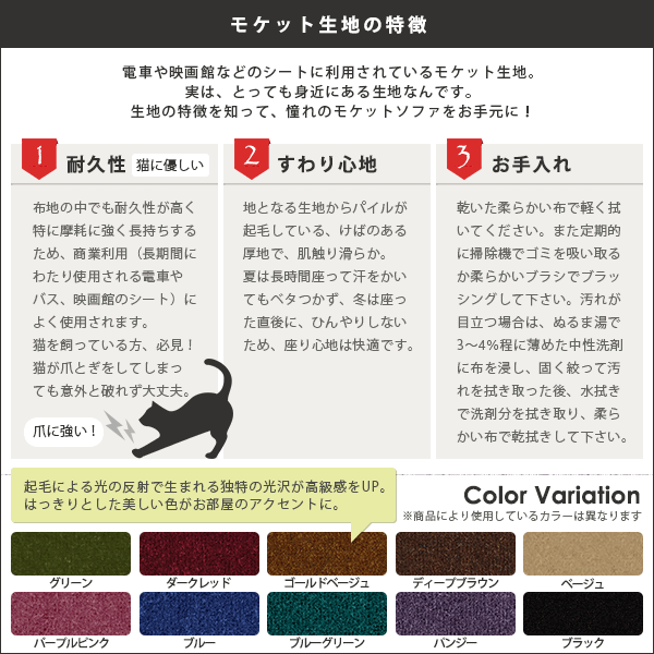 お値段が張ったけど、やっぱりモケット生地にして良かった!肌触りが良いし、リッチ感ある。