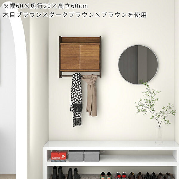 [使用商品] 上:幅60×奥行20×高さ60cm 木目ブラウン×ダークブラウン×ブラウン、下:幅60×奥行25×高さ60cm 木目ホワイトウッド