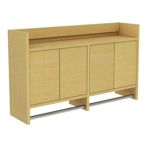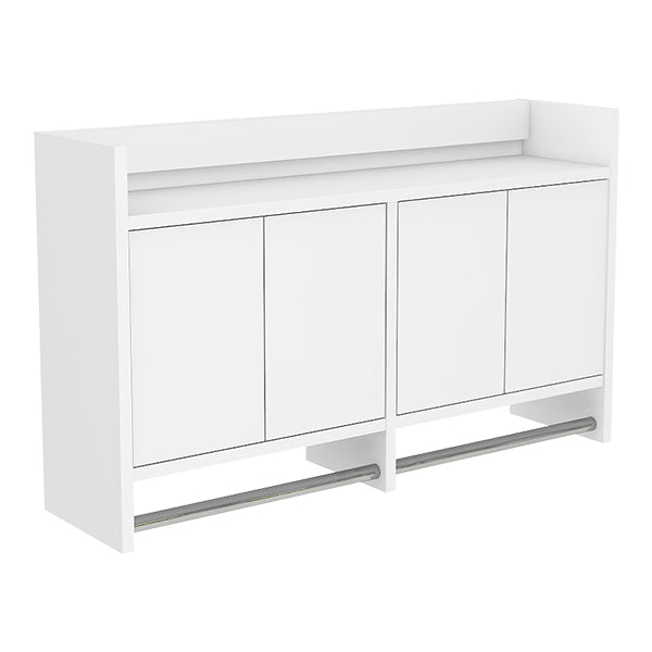 店舗のイメージをアップする壁掛けハンガーラックは商品展示にもおすすめです。お客様の目を引くディスプレイとして業務用にも活用できます。また、扉内には在庫等を収納することも可能なので、限られたショップ内を有効的に活用することが可能です。