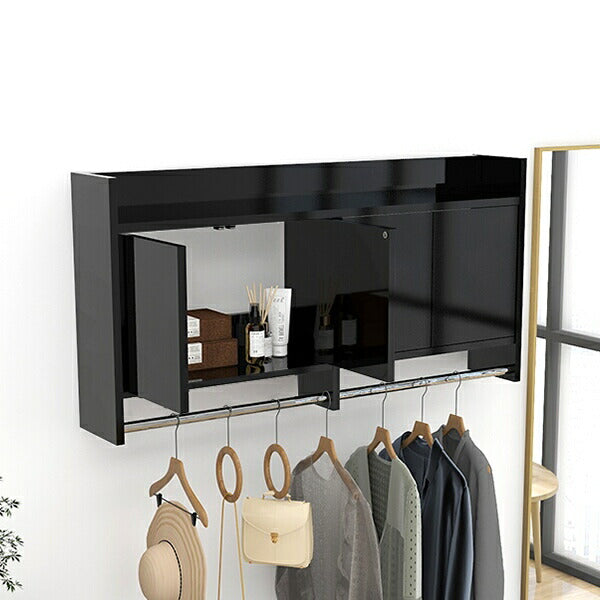 見せる収納と隠す収納を兼ね備えた扉付きタイプの壁掛けハンガーラック。