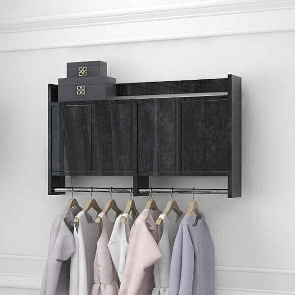 リビングをより機能的にする壁掛けハンガーラック。扉が付いた棚付きシェルフは、細々した生活用品をしっかりと隠せます。また、ハンガーバーにはカバンや洋服もたっぷりと掛けることができるため1台で理想の衣類収納に。一人暮らしのワンルームにぴったりのコンパクトサイズから、家具としても魅力的な大容量タイプまでお好みのサイズをお選びください。