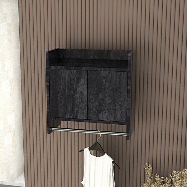 リビングをより機能的にする壁掛けハンガーラック。扉が付いた棚付きシェルフは、細々した生活用品をしっかりと隠せます。また、ハンガーバーにはカバンや洋服もたっぷりと掛けることができるため1台で理想の衣類収納に。コンパクトな洋服掛けとして、大容量の収納家具として、場所を選ばず収納スペースを増やすことが可能です。