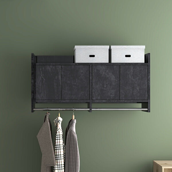 リビングをより機能的にする壁掛けハンガーラック。扉が付いた棚付きシェルフは、細々した生活用品をしっかりと隠せます。また、ハンガーバーにはお気に入りのカバンや洋服もたっぷりと掛けることができるため1台で理想の衣類収納に。コンパクトな洋服掛けとして、大容量の収納家具としてお好みのサイズをお選びください。