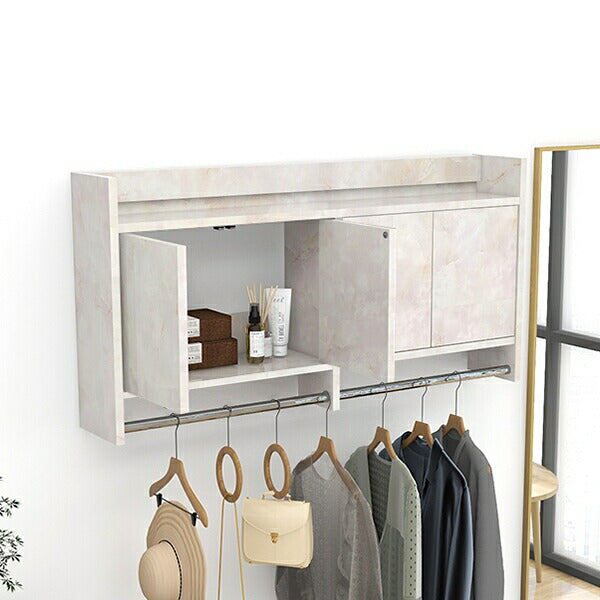 リビングをより機能的にする壁掛けハンガーラック。扉が付いた棚付きシェルフは、細々した生活用品をしっかりと隠せます。また、ハンガーバーにはカバンや洋服もたっぷりと掛けることができるため1台で理想の衣類収納に。一人暮らしにもぴったりのコンパクトサイズから、家具としても魅力的な大容量タイプまでお好みのサイズをお選びください。