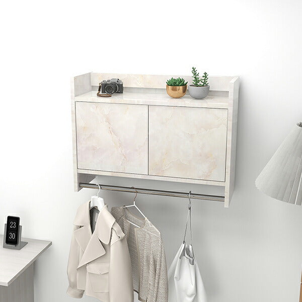 リビングをより機能的にする壁掛けハンガーラック。扉が付いた棚付きシェルフは、細々した生活用品をしっかりと隠せます。また、ハンガーバーにはカバンや洋服もたっぷりと掛けることができるため1台で理想の衣類収納に。コンパクトな洋服掛けとして、大容量の収納家具としてお好みのサイズをお選びください。