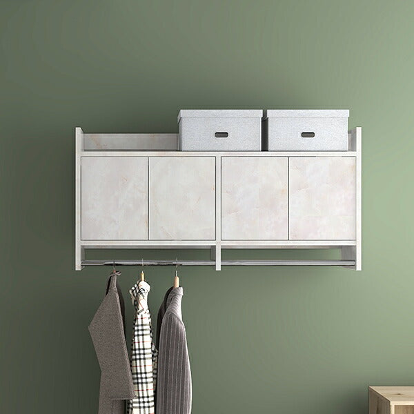 リビングをより機能的にする壁掛けハンガーラック。扉が付いた棚付きシェルフは、細々した生活用品をしっかりと隠せます。また、ハンガーバーにはお気に入りのカバンや洋服もたっぷりと掛けることができるため1台で理想の衣類収納に。コンパクトな洋服掛けとして、大容量の収納家具としてお好みのサイズをお選びください。