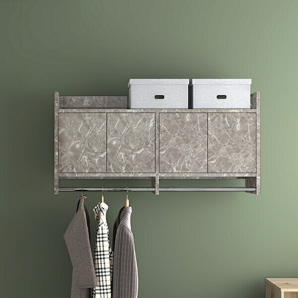 リビングをより機能的にする壁掛けハンガーラック。扉が付いた棚付きシェルフは、細々した生活用品をしっかりと隠せます。また、ハンガーバーにはお気に入りのカバンや洋服もたっぷりと掛けることができるため1台で理想の衣類収納に。コンパクトな洋服掛けとして、大容量の収納家具としてお好みのサイズをお選びください。