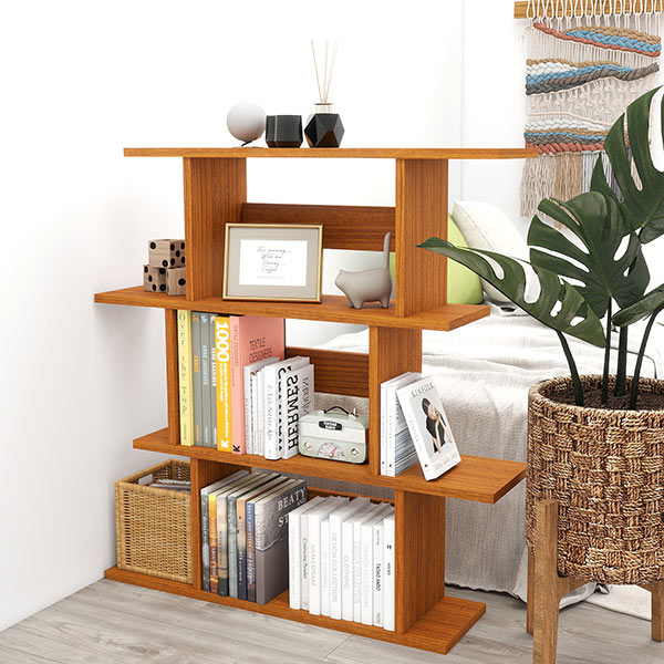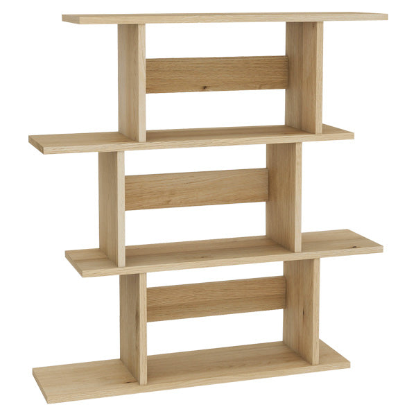 ジグザグに組まれた棚がアクセントになり、追加で複数並べることでまるで造り付けの壁面収納のような存在感にも。