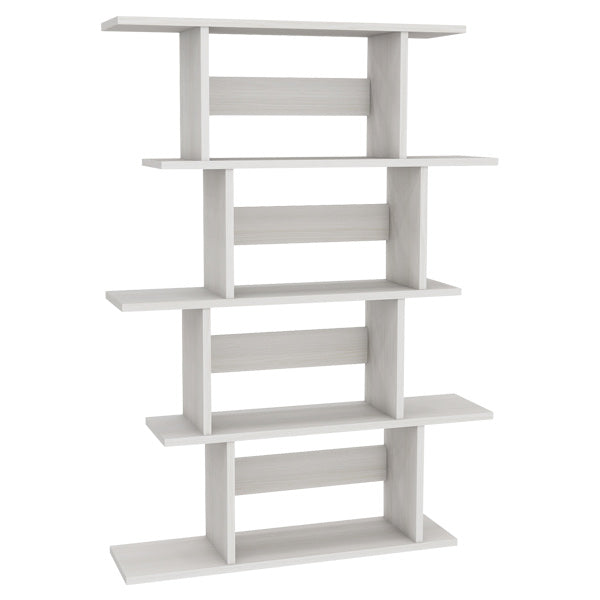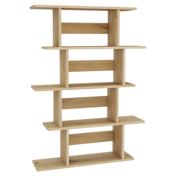 ジグザグに組まれた棚がアクセントになり、追加で複数並べることでまるで造り付けの壁面収納のような存在感にも。