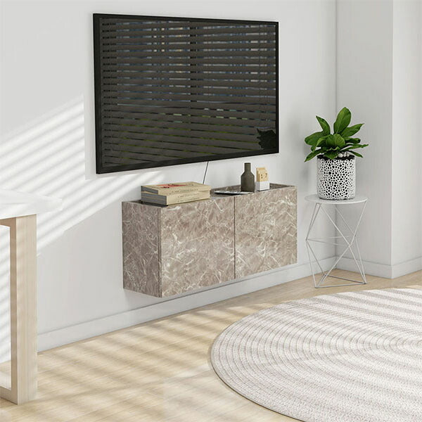 無駄を省いたシンプルなデザインに浮遊しているような見た目をもつフロートテレビ台。