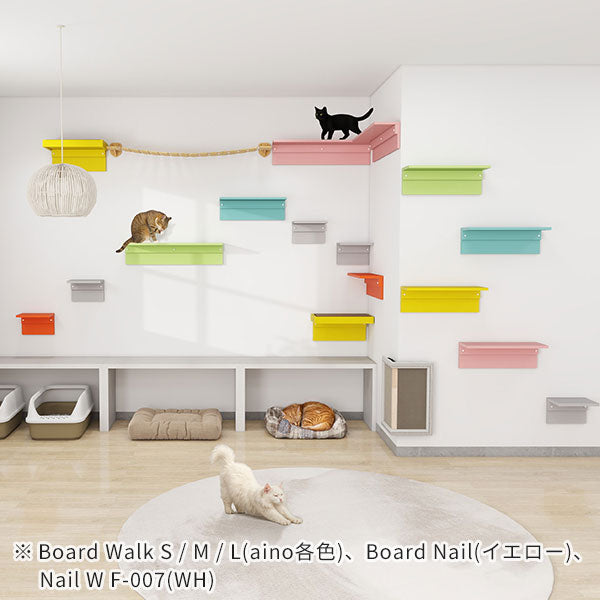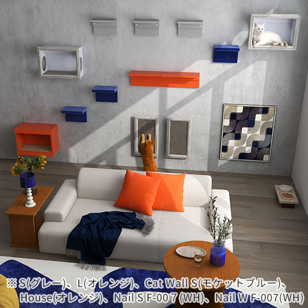 Board Walk S(グレー)、L(オレンジ)、Cat Wall S(モケット生地ブルー)、Board House(オレンジ)、Nail S F-007(WH)、Nail W F-007(WH)