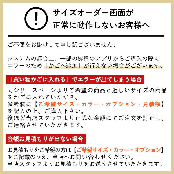• サイズオーダー品はキャンセル・返品・交換不可です。